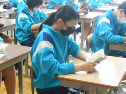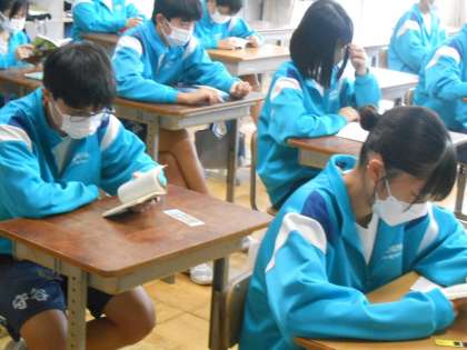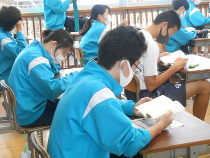 体育祭予行の日の朝も生徒達は落ち着いて読書を進めています。