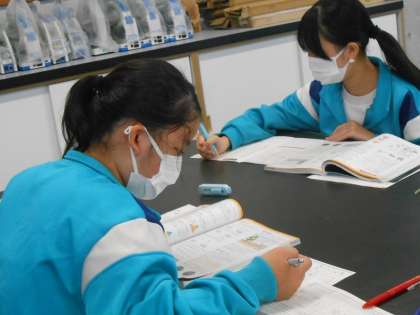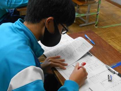 体育祭練習は本日休養日 通常授業の日 公開日 2021/10/13 更新日 2021/10/13 生徒たちの活動 13日は雨にあるとの予報が月曜日の時点で分かっていたので、今日は体育祭の練習はやめて、体を休める意味でも、通常の授業を行いました。授業では多くの教科で前期期末テストの答案返却などが行われました。 写真は3年生の理科の様子です。答案用紙を受け取り、もう一度問題をやり直していました。