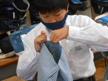 だんだんとリバーシブルバッグの完成が近づいているようです。