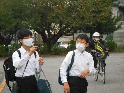 10月19日(火)曇り空の朝の様子 公開日 2021/10/19 更新日 2021/10/19 生徒たちの活動 3学年企画委員の生徒のあいさつ運動の朝です。8時を目処に集合して、今朝の状況について意見交換をして終わります。 早いもので10月もあと2週間を残すのみです。一日を大切にする気持ちを大切にして いきたいものです。