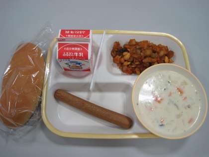 今日の給食 公開日 2021/11/09 更新日 2021/11/09 お知らせ 11月9日の給食は「コッペパン、牛乳、フランクフルト、チリコンカン、クラムチャウダー」です。給食委員1年生の放送では、パンに挟んでチリドッグにするとさらにおいしいですよ、と伝えました。