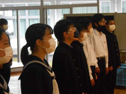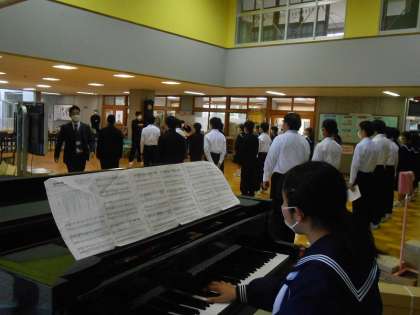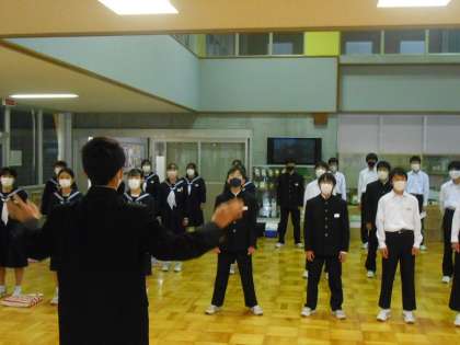 2年1組の生徒達が職員室までのホールで初めて合唱コンクールの練習を行いました。音量、響き、安定感、どれをとっても素晴らしい合唱に聞こえてきました。