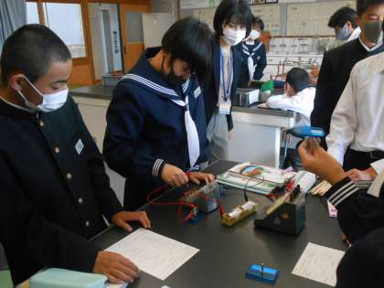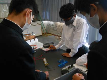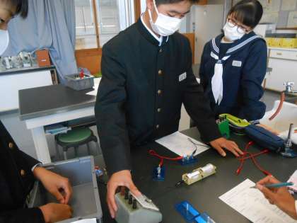 直列回路や並列回路をつくり、器具を正しく使用して電流や電圧の大きさを調べることができるか、個別に実技テストを行っていました。早さと正確さが必要です。