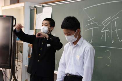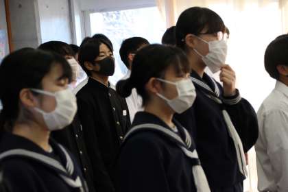 11時からは3学年の合唱です。最後の合唱を心を込めて歌い上げました。本番前の各クラスの様子から紹介します。