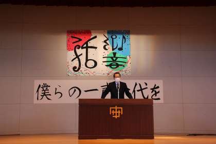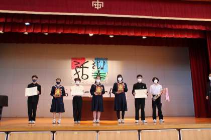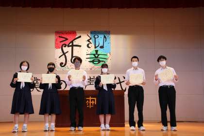 表彰式もYouTubeライブ配信で配信しました。体育館で校長が結果を発表するのを、各クラスはオンラインで表彰式に参加します。