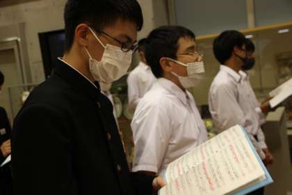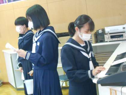 表彰式の様子 2 公開日 2021/11/16 更新日 2021/11/16 生徒たちの活動 1年最優秀賞 2組「涙をこえて」 2年最優秀賞 1組「翔る川よ」 3年最優秀賞4組「虹」が選ばれました。 そしてすべての中で最高優秀賞は、3年4組「虹」と決定しました。おめでとうございます。体育館で発表していると、教室から大きな拍手や歓声が聞こえてきました。
