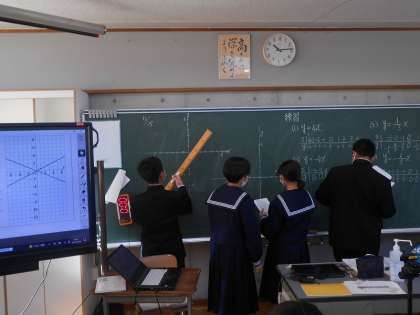 1年数学 x座標 y座標 公開日 2021/11/15 更新日 2021/11/15 生徒たちの活動 y=4xの式を具体的に表にするとどんな表ができるかをノートに書きました。またその表の中の数字をx座標、y座標に入れてグラフを描きました。