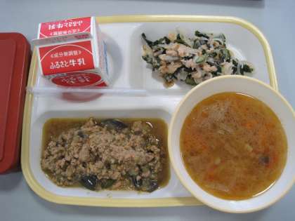 今日の給食 公開日 2021/11/17 更新日 2021/11/17 お知らせ 11月17日の給食は「ごはん、牛乳、なすの中華炒め、ツナオニオンサラダ、鶏団子スープ」です。1年生の給食放送ではわかめについて伝えました。