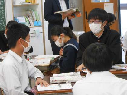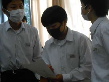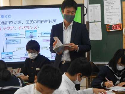 「国会」「司法」「行政」の3権の関係について、グループで話し合っています。