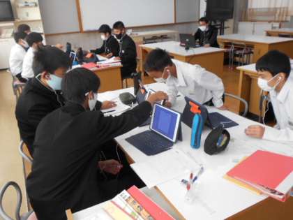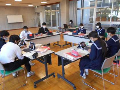 本日、第2学年では、キャリア教育の一環として、オンライン企業訪問を行っています。訪問相手は、公的機関やマスコミ、食品会社、工業系企業等と多岐にわたっています。