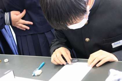 凸レンズを使って像のでき方を調べています。生徒達は実験が大好きです。
