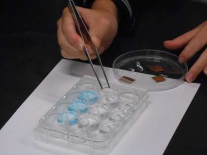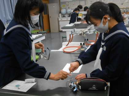 マグネシウムや亜鉛を電解質の水溶液に入れる実験を行い,金属によってイオンへのなりやすさが異なることを実験で調べます。