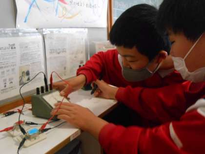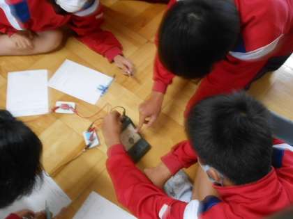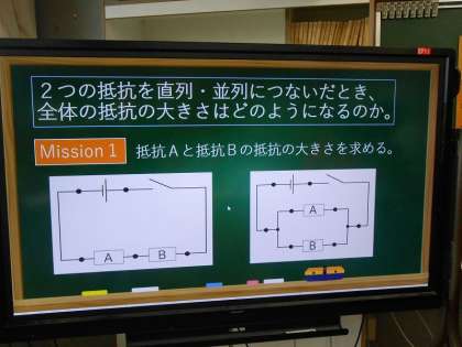 直列と並列では抵抗はどちらが大きいか、実験をして確かめています。