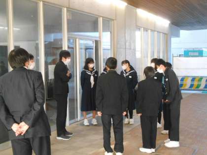 今日は1学年の企画委員があいさつ運動を行っていました。