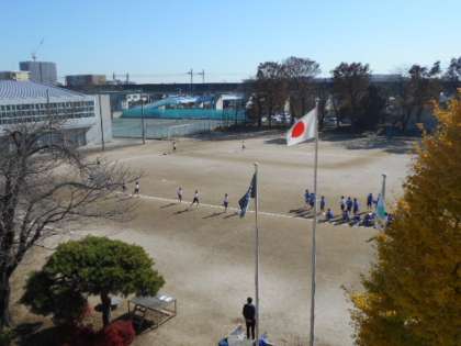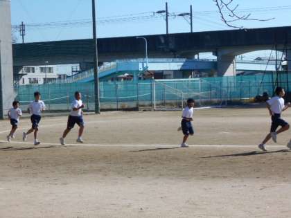 リレーの学習で、トッラクをスピードやタイムを考えながら一生懸命走っていました。