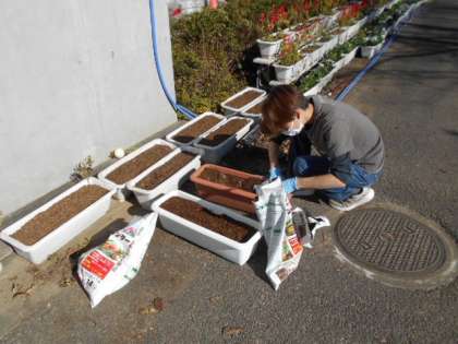 プランターづくり 公開日 2021/11/26 更新日 2021/11/26 お知らせ 学校サポーターの佐藤さんに協力してもらい、ラナンキュラスやチューリップの球根を植えました。きれいな花が咲くのが楽しみです。