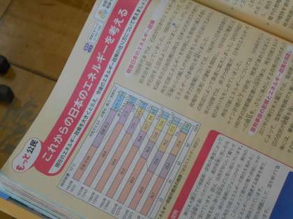 教科書には1960年代から10年ごとエネルギーの分類表が書かれています。生徒達はこのグラフを参考にして、10年後の日本のエネルギー政策がどうあって欲しいか考える授業です。