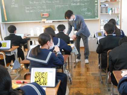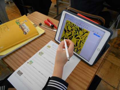 iPad上に隠し絵を示して、その中にどんな動物がどれだけ隠れているか、There isとThere are で表す時間です。