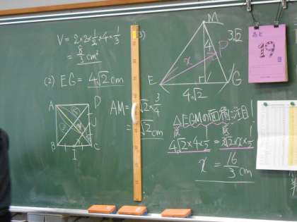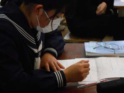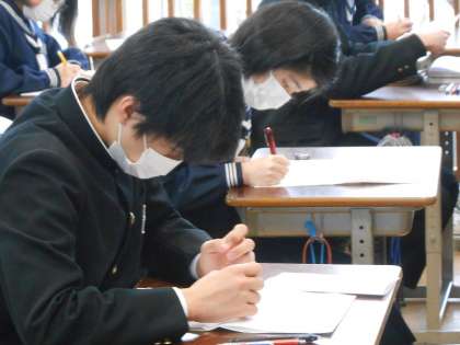 生徒達は入試対策問題を解いた後、先生とその解き方を再確認します。