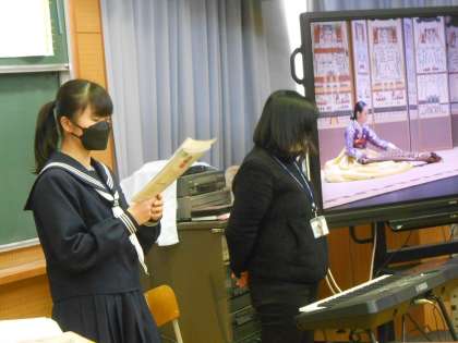 日本の伝統的な和楽器である琴と世界の弦楽器の奏法や音色などを聞き比べ、気付いたところをまとめて発表します。