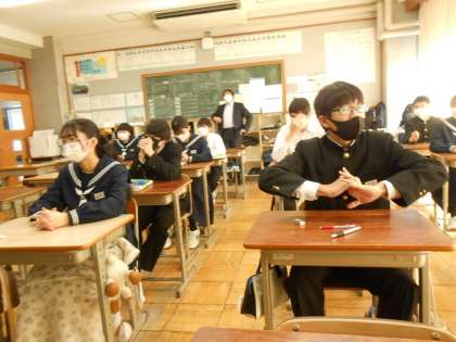 3年間、ALTのタイ先生と一緒に学習した英語の時間が今日で終了します。タイ先生が生徒達でALL Englishでメッセージを伝えます。生徒達はうなずきながら、ALTのタイ先生の放しに耳を傾けます。