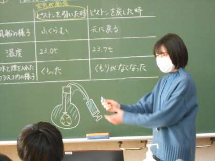 露点、湿度など気象分野も高校入試問題によく出題される単元です。雲のできるメカニズムについて学習しています。