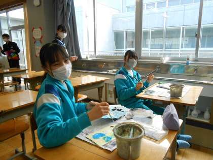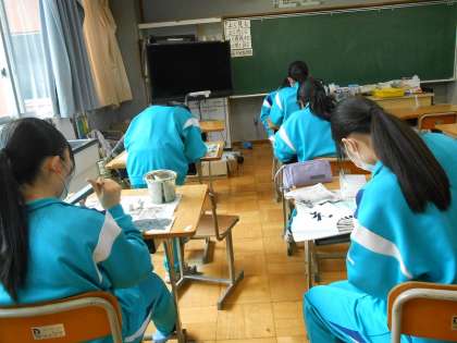 入試前の午前日課と入試のため、美術の時間がなくなり、その作品がもう少しのところで止まっていたので、この時間を使って仕上げています。