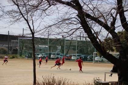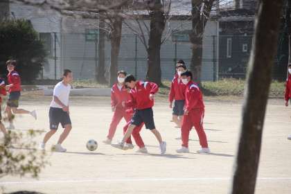 サッカーボールを追って元気いっぱいの2年の生徒達です。