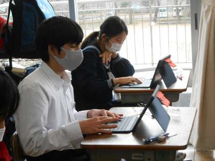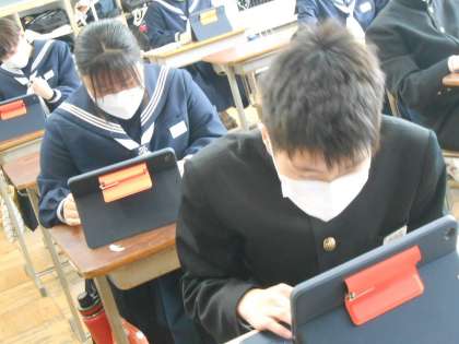 2年4組の3時間目の英語の授業はDMM英会話を進めました。本年度は2年生でDMMを実施しましたが、次年度はより機会を広げていく方向です。公立中学校全国初の守谷の試みです。