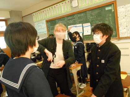 どの有名人に、なにを言うか、What will you say to 〜? I will say to him/her " 〜 " .などと、willを使って互いに対話します。