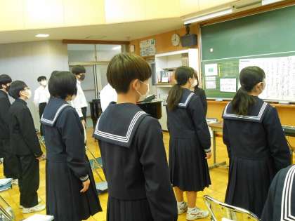 2年生の音楽の時間で、卒業生に送る歌としてLet's search for Tomorrowを練習していました。