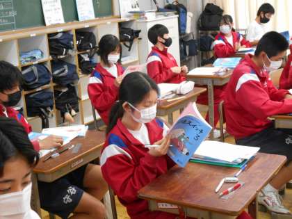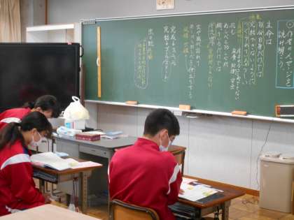 3年生の国語の授業は,詩について。プリントやワークを用いて,内容に迫っていました。