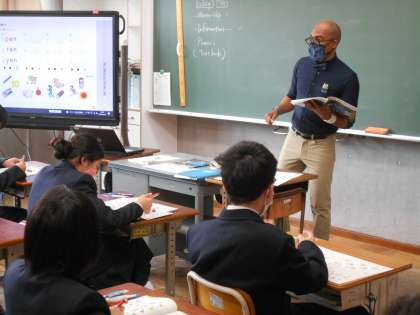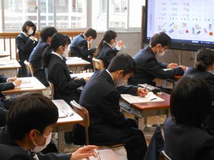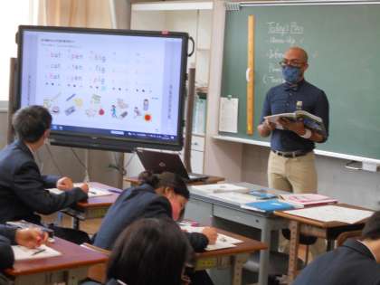 1年生の英語の授業は単語の発音。何回も繰り返し行っていました。