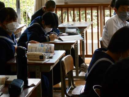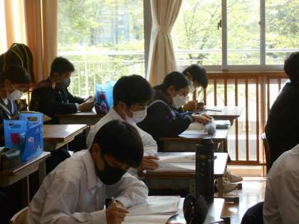 3年生は,本日、全国学力・学習状況テストがあります。自分の実力を出そうと,確認している生徒が多く見られます。頑張れ3年生!