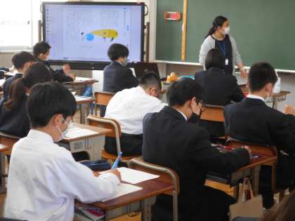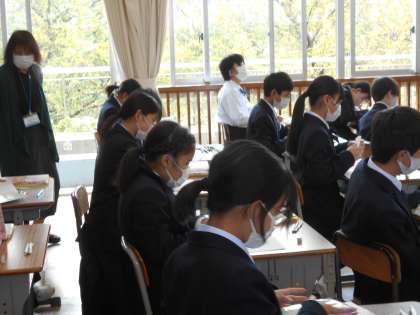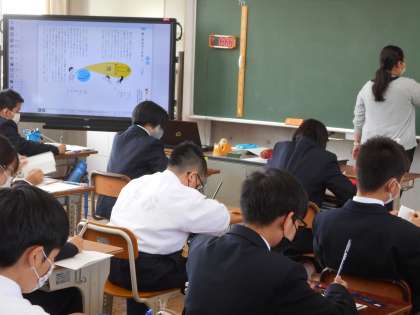 1年生の国語の授業。説明文について進めていました。皆真剣にノートにまとめていました。