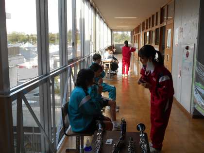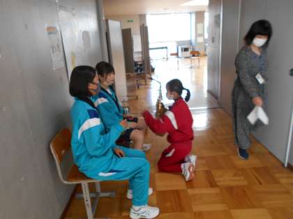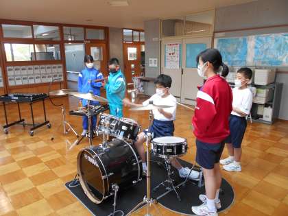 吹奏楽部の練習風景。今月末に守谷駅で演奏を披露する吹奏楽部。練習に励みたいところですが,1年生の練習に丁寧にアドバイスをしている姿は大変立派でした。