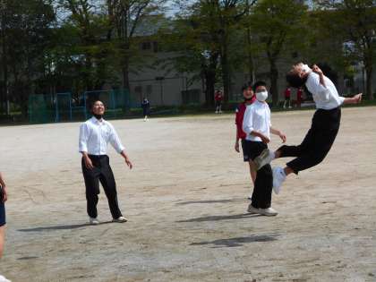 昼休みのグラウンド。多くの生徒が楽しそうに遊んでいました。これからも,思いっきり遊んで,思いっきり学んでください!