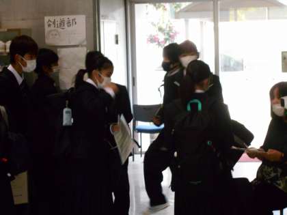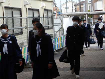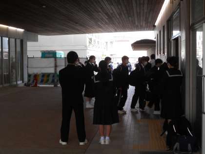生徒が元気に登校してきました。今日も頑張りましょう!