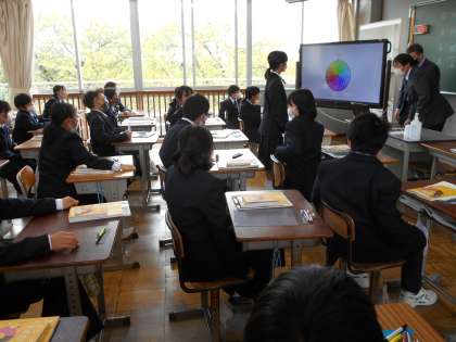 1年生の英語の授業は会話文について。代表者が流暢な英語を話していました。