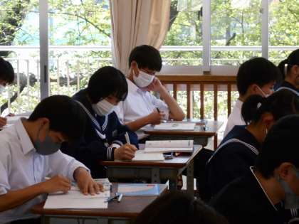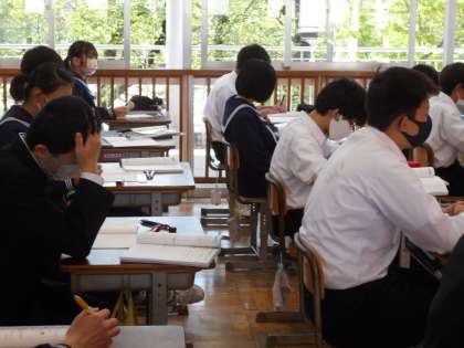 3年生の数学の授業は展開について。皆集中して取り組んでいました。