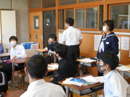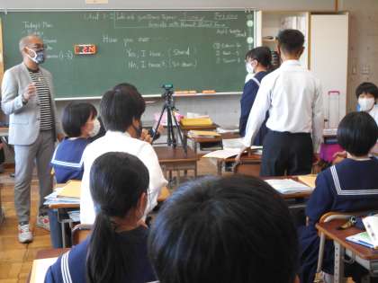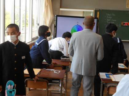 3年生の英語の授業は会話文の練習。皆意欲的に取り組んでいました。