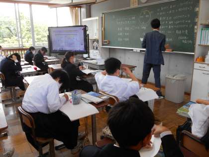 1年生の社会の授業は,時差について。さまざまな都市の時間を計算していました。