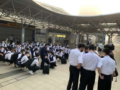 実行委員の運営で、出発式を行いました。皆きちんと話を聞いていました