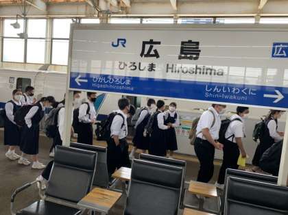新幹線は広島駅に到着。これからバスで平和記念公園に向かいます。