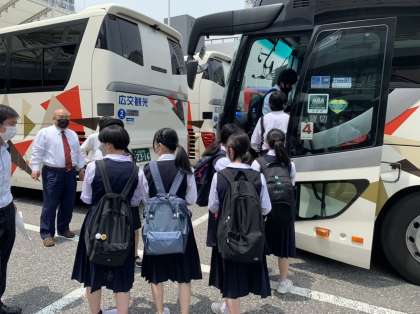広島駅からバスに乗り込み、平和記念公園に向かいます。