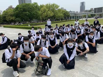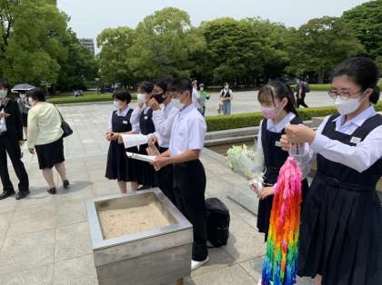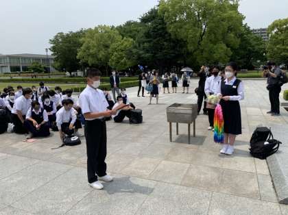 平和記念集会を行いました。実行委員から、守谷中平和宣言を行い、黙祷を捧げました。
