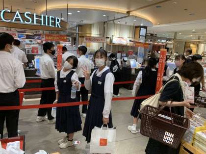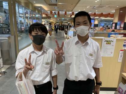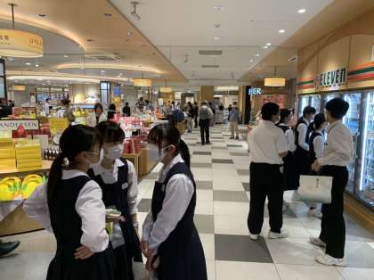 広島駅での買い物タイム。皆、考えながら過ごしていました。