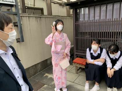 着物レンタルを予約した班。皆似合っていました。