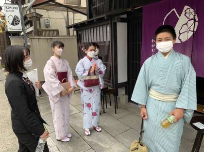 お着物を着て、日本文化に触れました。男子も挑戦、皆嬉しそうです。