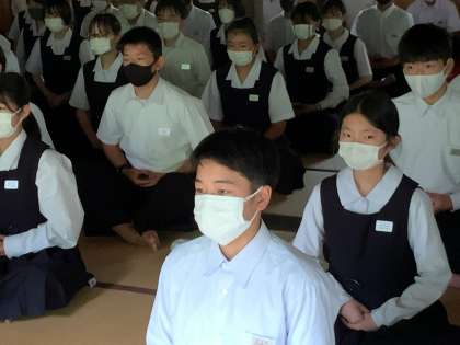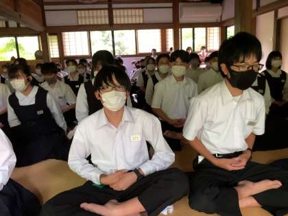 座禅が始まりました。皆真剣です。座禅とは、日頃一杯になっている心を空っぽにすることです。